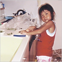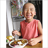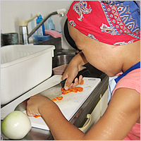 昨年は、ピーラーでの野菜の皮むきとカレールウを鍋に入れることが息子さんの担当でした。今年は、野菜を切ったり、炒めることにも挑戦しました!