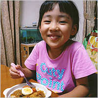 の「フルーツカレー」を参考にして作ってくださいました。ご家族でカレーに合う果物について話題にしたところ、お父さんはバナナ、娘さんはパイナップル、お母さんはりんご、だったそうです。