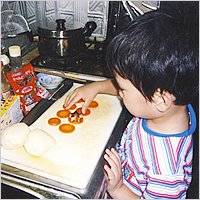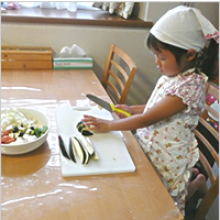 お手伝いが大好きという5歳の娘さん。とても楽しみにしていたカレー作りでは、炒めものにチャレンジしたり、お湯がはねないようにルウをお玉にのせてみたりと大活躍!