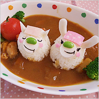 とうもろこしの鼻がポイントのブタさん。ごはんの中からカレーが出てくるアイデアは楽しいですよね。