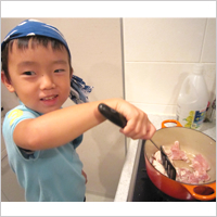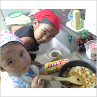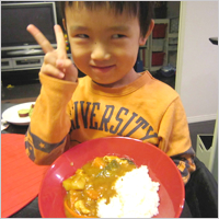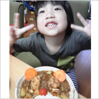 4歳の息子さんがカレーのリーフレットを見ながら「作る」と言い、いざ始めると「おれに任せろ!」とばかりに、切ったり炒めたりと大活躍。カレーは大好きで、大人とほぼ同じ量をペロリと完食!