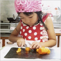 張り切って準備や調理を楽しみました。妹さんは、野菜を洗ったり皮むきなどをお手伝い。お兄ちゃんは、ピーラーを使って皮むきをしたり、炒めたり、ルウを入れたり。できたカレーは、いつもよりおいしく感じました。