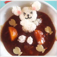 幼稚園から帰宅後、お菓子を食べ、夕飯を食べなくなったという娘さん。くまさんのウキウキカレーライスを作ると完食! びっくりしました!!