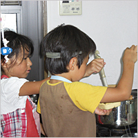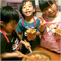 4歳の記念に、双子の弟たちが待ちに待ったはじめてのクッキング。お姉ちゃんにも教わりながら、うれしくてニコニコ。「ママ、パパ、食べてみて。おいちいでしょ」と、いつも以上に家族みんな笑顔いっぱいの食卓になりました。