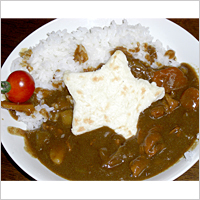 子どもと作りました。ネズミさんカレーです。野菜を型抜きしたり、飾りつけをしたり、みんなとても楽しそうでした。