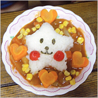 保育所でいただいたルウを使って、さっそく子どもとクッキング。一緒に材料を切ったりしました。七夕が近いこともあり、お星さまをイメージし、子どもが大好きなハートをのせて完成! ニコニコして食べていました。