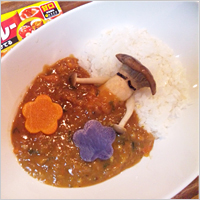 「旬・簡単・かわいい」をテーマに、秋の味覚を使って子どもでも簡単に作れるかわいいカレーの盛りつけ方を考えました。キノコの苦手な子どもも、おいしく食べられます!