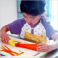 ずっと料理をしたがっていた娘が、はじめて包丁を握ってカレー作りに挑戦しました。危なっかしい手つきでしたが、家族のために野菜を切ってくれました。じょうずに切れて、娘も大満足の様子。次は何を作ろうかな? と、考えています。