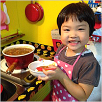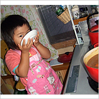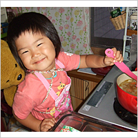 4歳の娘と作りました。エプロンをつけて、うれしそうです。