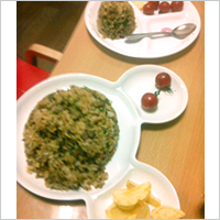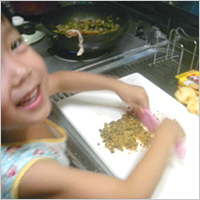 ルウ刻みと、盛り付けをがんばっていました。パパの大きなお皿と交換して食べていました。