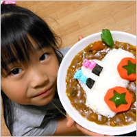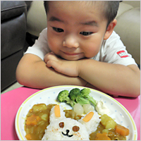 幼稚園の七夕音楽祭の大成功の記念にバーモントカレー甘口をもらったので、親子でワクワクしながらクッキングしました。初めて最初から最後まで一緒に作ったので、できあがったときのキラキラした目に私自身も感動しました!!盛り付けはウサギ組にちなんでうさぎで♪