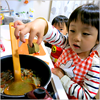 ハロウィンにカレーを作りました。子どもたちもお手伝いが大好きなので楽しんで作ってました。「自分たちが作ったからおいしい~」っと言いながらたくさん食べてくれました。「また一緒に作ろうね♪」って言ってくれました。