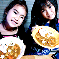 幼稚園でいただいたカレールウを使って、動物カレーを一緒に作りました。とても喜んで食べていました。