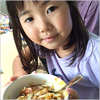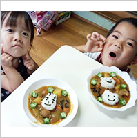 初めて上の子ども(5歳)、下の子ども(3歳)と一緒にカレーを作りました。できあがるまでに、時間はかかりましたが親子共々楽しかったです。と~ってもかわいくおいしくできて、子どもたちは珍しくおかわりをしました。
