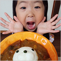 幼稚園のおみやげにいただいたカレールウで、父の日に、感謝を込めてカレーライスを作りました!初めて使った包丁は、ドキドキ!ルウを入れるときはワクワク!しながら、作りました。盛りつけは、メガネをかけたパパの顔にしました!