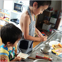 カレーは、材料を洗って切るところからお兄ちゃん(5歳)にお願いしています。服を脱いで本気です。弟くん(2歳)は型抜き担当。格別においしいです!親子クッキングというより、兄弟クッキングです(笑)お兄ちゃんが幼稚園からいただいたルウ、おいしくいただきました♪ごちそうさまでした。