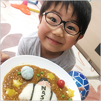 宇宙カレーを作りました。ごはんを形つくったり、宇宙をイメージして星を飾るのが楽しかったそうです。どこから食べようか迷いながら、「おいしい」と完食でした!