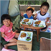 花火大会の日にカレーパーティー!野菜を入れてお鍋をぐるぐる!みんなで外で食べるととってもおいしい!