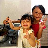 園からバーモントカレーのルウをいただき、姉妹で初めて作りました。野菜の皮むきや切るのは、お姉ちゃん、ルウを入れるときは下の子も一緒に手伝ってくれました。夜ごはんに、パパがどんな反応してくれるかドキドキでした!