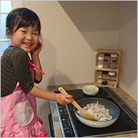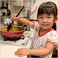 最近5歳になった娘、にんじんを切って、しめじを手でバラバラにして、初めてフライパンをさわりました! 最後は家族にふるまい、おかたづけまでがんばって、「はじめてクッキング」無事終了しました!