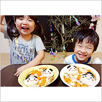 長男が幼稚園でもらってきたカレールウで、今年の七夕は織姫と彦星のカレー♪ 子どもたちはハムとチーズを星型に抜き、カレーの天の川に散りばめました☆ 楽しく、おいしく食べられました!