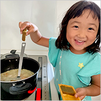 初めて一緒にカレー作りをしました。大好きなにんじんを型抜きし、ごはんをパンダさんにして、とても楽しかったようです。自分で作ったカレーを「おいしい!」と完食していました。すてきなおうち時間をありがとうございました。