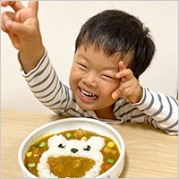 保育所でルウをいただき、「カレー作る」と大はりきり。家では「嫌い」と食べなかったカレーをたくさん食べ、家族にも『自分で作ったんだよ!』と得意気でした。ここまで料理を楽しんだのも、たくさん食べたのも初めて。改めて、食育の大切さについて考えさせていただきました。