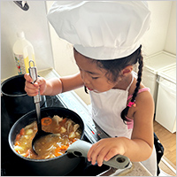 今まで料理を一緒にするということがなかったのですが、今回初めて親子でカレーを作ってみました。作ることに興味をもってくれたり、自分で作ったカレーを食べてうれしそうにしたり、ふだん見られない新たな一面を見ることができました。食に関しても、それ以外のことも、これからいろんなことに挑戦して学び、成長につなげてもらえたらと思います。