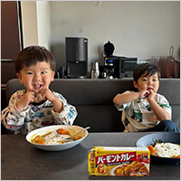 初めてのカレー作り。自分で買い物をし、野菜の本も見ながら野菜の皮をむきました。野菜のにおいを確認しながら切っていて、料理は五感を使うんだなと、感心しました! カレーは家族からも好評で、とても誇らしげ。自分の包丁がほしいと言ったくらい楽しかったようで、親子でたくさんの発見・学びがありました。リーフレットが挑戦のきっかけになり、ハウスさんにとても感謝しています!