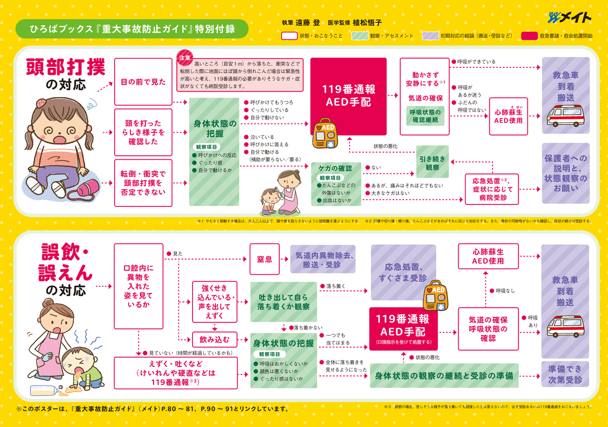 事故発生時の初期判断・初期対応をまとめたカラーポスター付き。